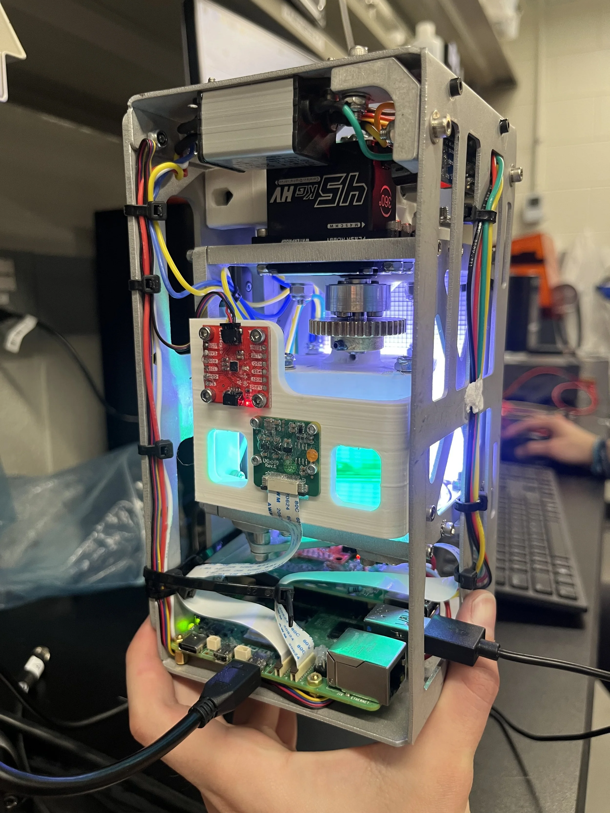 This payload was designed to characterize the dynamics of the liquid-gas interface in a vortical flow subjected to perturbations.